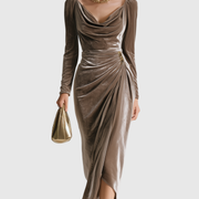 • Romantic cowl neckline – Softly draped for a refined, feminine frame that highlights your natural elegance.