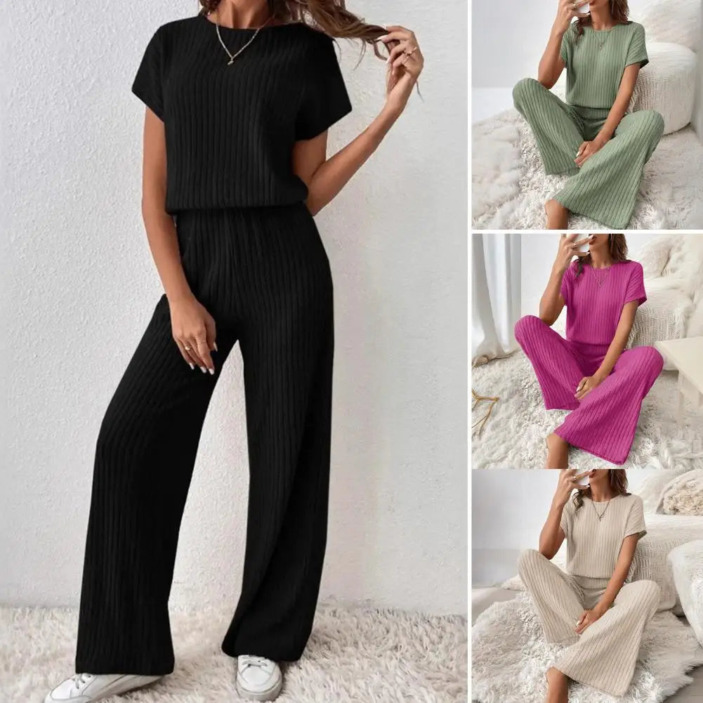 With the Noémie™ knitwear set, you'll effortlessly radiate comfort and style. The combination of a breezy, short-sleeved sweater and wide-leg trousers makes this outfit ideal for relaxed days or casually chic moments in spring and fall.